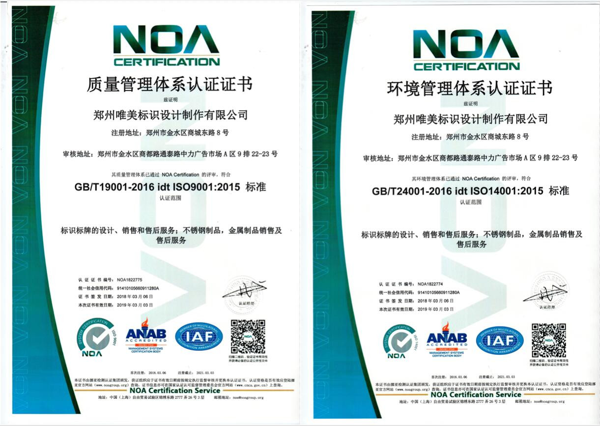 2024-3-21郑州唯美标识设计制作有限公司是一家专注从事地产住宅、商业广场、商务办公、医院系统、学校文化、工业园区、市政交通、旅游景区、酒店餐饮、银行金融、城市环境标识标牌系统规划、设计、制作、...